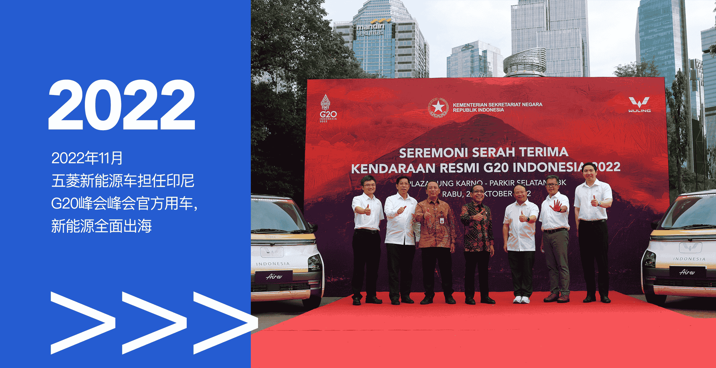 2015年,上汽通用五菱启动印尼公司建设,2017年7月正式投产运营。目前,印尼公司已投产五菱Air EV、五菱缤果、宝骏云朵等多款新能源汽车,在当地新能源市场占有率超50%,成为印尼最受欢迎的中国汽车品牌。其中,五菱Air EV凭借出色市场表现,成为2022年巴厘岛G20峰会、东盟峰会及世界水资源论坛的官方指定用车。